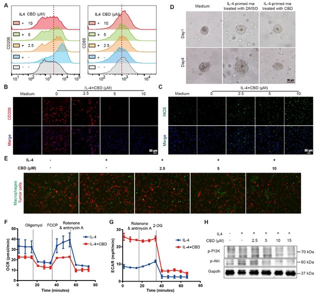 图3. CBD抑制巨噬细胞替代激活促进巨噬细胞抗肿瘤作用