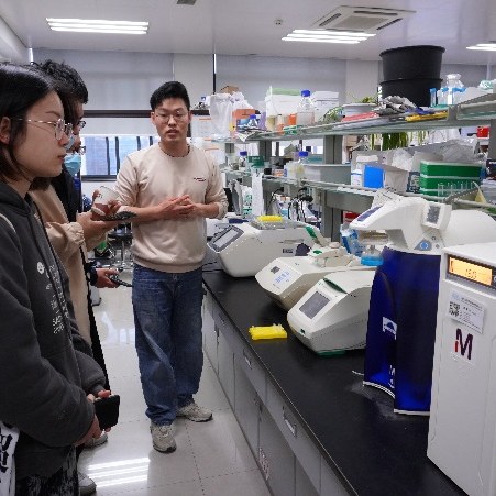 随后,在志愿者的带领下,同学们走进了各系实验室,开启院楼探秘之旅。摇床里微生物培养的秘密,流式细胞仪工作的奥义,动植物进化图谱的内涵,都在研究人员热情且详细的讲述下一一展开。从环境参观到设备介绍,从项目讲解到激励创新,实验室里的情与景将科研热忱播种在每一位学子的心中。
