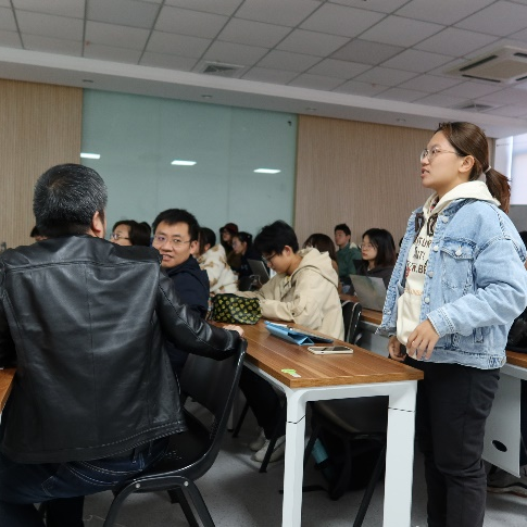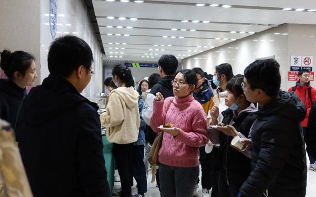 讲座结束后,大家来到会场外的茶歇点稍作休息。在大家品尝美味甜点与水果拼盘的同时,2018级本科生蒋震进行了经验分享。他从学习规划、员工工作、竞赛参与等方面总结了自己的本科经历以及心得。分享结束后,他又与同学们就热点问题进一步交流。