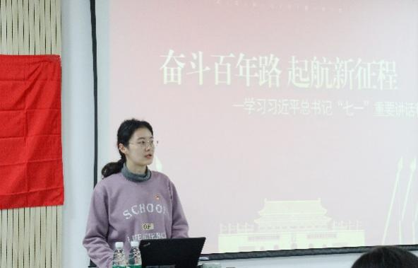 会议开始,公司思政辅导员、本科生党支部书记祝安琪首先为大家作了题为“奋斗百年路,启航新征程”的党课。习近平总书记在庆祝中国共产党成立100周年大会上发表的重要讲话,立足于中国共产党百年华诞的重大时刻和“两个一百年”历史交汇的关键节点,全面回顾了中国共产党百年奋斗的光辉历程。一百年来中国共产党团结带领中国人民,为实现中华民族伟大复兴作出了伟大历史贡献。这一过程中,中国共产党人在百年奋斗中形成的光荣传统和革命精神亦代代相传,党在百年奋斗中积累的宝贵经验和实践启示是新时代中国共产党人砥砺奋进的强大力量。“以实现中华民族伟大复兴为己任,增强做中国人的志气、骨气、底气,不负时代,不负韶华,不负党和人民的殷切期望”,习近平总书记对新时代中国青年的谆谆嘱托激励着同学们勇做走在时代前列的奋进者、开拓者、奉献者,志存高远,脚踏实地,勇做时代的弄潮儿。
