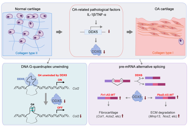 DX5通过可变剪接和G-四链体解旋双重作用模式阻止透明软骨纤维化和降解的新机制