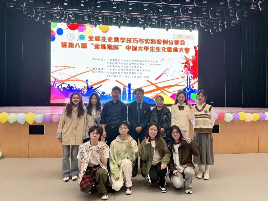 近日,全国生化教学技巧与实践案例分享会暨第八届“金斯瑞杯”中国老员工生化歌曲大赛在泉城济南山东第一医科大学顺利举办。院杨荣武老师、丁智老师和卢彦老师参加了本次会议。来自全国的73支队伍在山东第一医科大学展开激烈角逐,最终,医公司与公司参赛队伍分获一等奖和二等奖。
