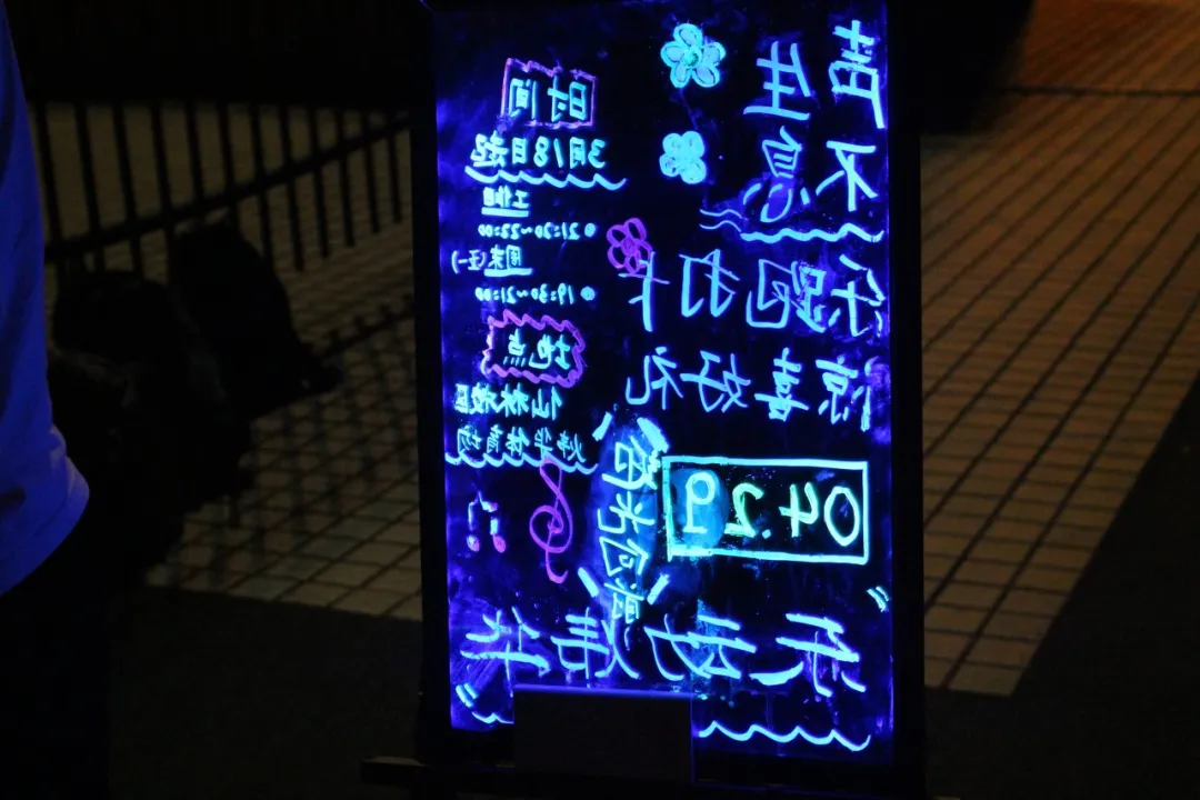 手上荧光映照,点燃了一张张青春的脸庞上活泼的笑颜;耳畔音乐律动,漾开了氤氲在空气中醉人的晚风;荧光夜跑因为我们的热情与张扬的青春风姿而大放异彩!