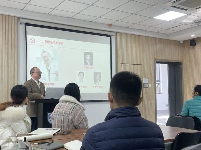 生化系教师党支部教师代表李根喜教授应邀进行了经验分享。李老师多年来在一线从事本科生、研究生的教育培养工作,培养出了最年轻的中科院院士樊春海、美国青年科学家总统奖获得者张文君和973首席科学家罗凌飞等一大批优秀人才。他以这三位优秀员工的故事为切入点,将自己治学育人的经验和体会分三点娓娓道来:一是研究生一定要培养自己的文体爱好来保证身心健康,这是完成所有工作的前提;二是研究生应当树立远大的科研理想,认识到科研的本质是“解决问题、创造未知”,论文则是这个过程中的自然结果;三是导师不是员工的“老板”,而是超出学业内容外在待人接物、为人处世等各方面的“师父”,提醒同学们遇到困难一定要寻求导师的帮助。