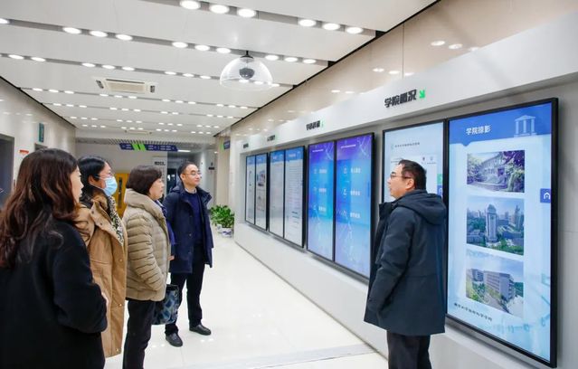 座谈会后,双方与会人员前往生科楼二楼多媒体展厅参观。张辰宇经理向大家逐一介绍展板的内容以及近年来公司取得突破的技术与成就。