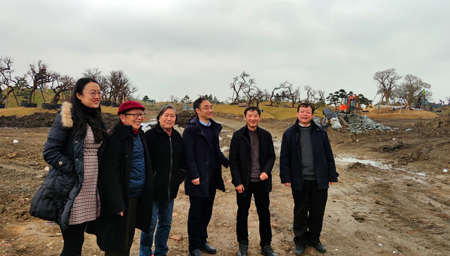 随后,纪勇一行冒雨走进周斌芳大师的新梅园施工现场。周斌芳向大家介绍了梅园规划、建设内容与梅树布局配置等情况。纪勇等充分肯定了梅园建设的专业水平,并高度称赞其为公司绿化建设做出的重要贡献。