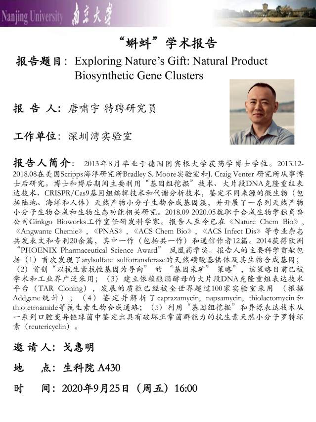 “蝌蚪”学术报告:Exploring Nature's Gift: Natural Product Biosynthetic Gene Clusters