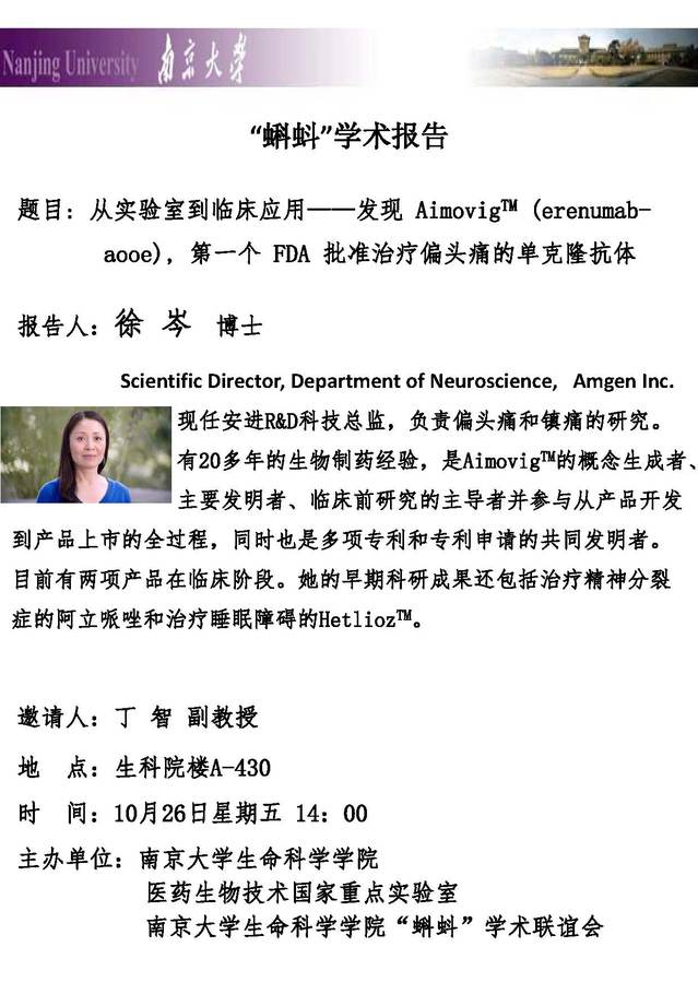 “蝌蚪”学术报告:从实验室到临床应用——发现 AimovigTM (erenumab-aooe), 第一个 FDA 批准治疗偏头痛的单克隆抗体