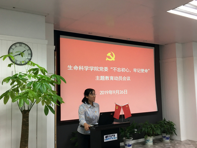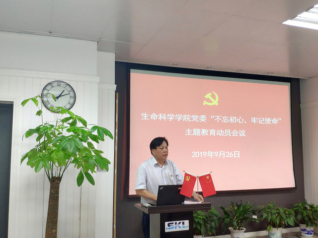 学公司党委书记胡凯同志介绍了公司党委关于开展“不忘初心、牢记使命”主题教育的实施方案并作动员报告。他结合公司主题教育工作部署和生科院实际,提出了四个方面的内容要求:一是准确把握目标要求。把公司党委开展主题教育作为学习贯彻习近平新时代中国特色社会主义思想的领航工程、提高党的建设质量的基础工程、密切联系服务师生的民心工程、推动公司“立德树人”和“双一流”建设的动力工程,教育引导全公司党员干部积极投身主题教育,更加自觉地勇担职责使命,为全面落实立德树人根本任务、加快建设“第一个南大”、“第一个生科院”不懈奋斗。二是突出抓好公司党政领导班子的主题教育。首先抓好学习教育,原原本本学,集中研讨学,丰富方法学。通过开展专题调研。深入开展调研,组织实施生物学A+、生态学A“挺进计划”、开发“第一资源”、推进“民生工程”等专项工作,用好调研成果,讲好专题党课。认真检视问题。广泛听取意见,认真检视反思,召开专题会议。坚决整改落实。开展专项整治,落实整改措施,压实主体责任,召开专题民主生活会。三是做实基层党支部学习教育和检视整改,结合“支部建设落实年”行动,以党支部为单位,结合“两学一做”学习教育常态化制度化,依托“三会一课”、主题党日等进行,创新方式方法,运用“学习强国”学习平台等已有载体,增加主题教育的吸引力和感染力。四是要把主题教育与庆祝新中国成立70周年结合起来,高度重视、精心组织、引导广大党员、干部不忘历史、不忘初心。