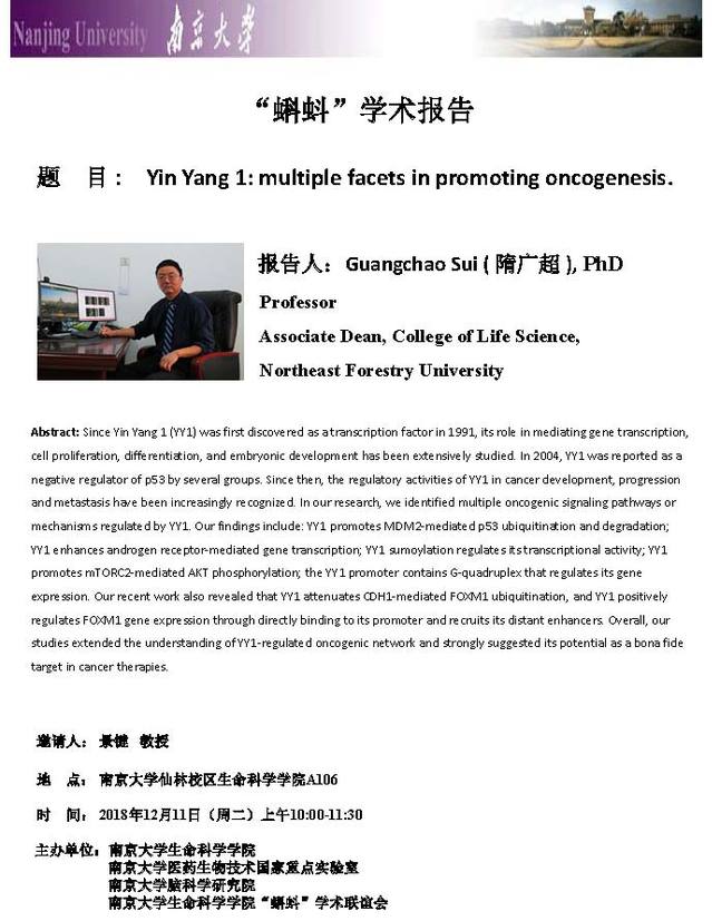 “蝌蚪”学术报告:Yin Yang 1: multiple facets in promoting oncogenesis