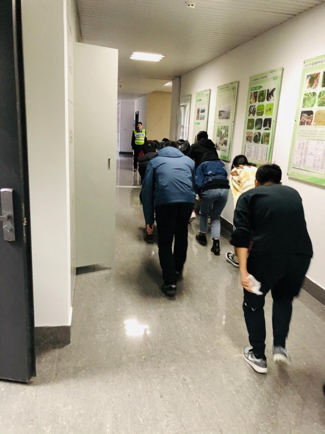 本次演习的主要情节设计为火灾发生、报警、应急指挥、紧急疏散、大火扑救、火灾扑灭、保护现场。首先,生科院拔尖班的大一新生全部参加疏散演习。随后,全体人员在生科楼平台参加了本次演习的第二个环节——如何使用灭火器。校保卫处闫勇科长还就灭火器原理、使用方法等做了详细说明,并现场组织演习人员分组进行了灭火器的实际操作。