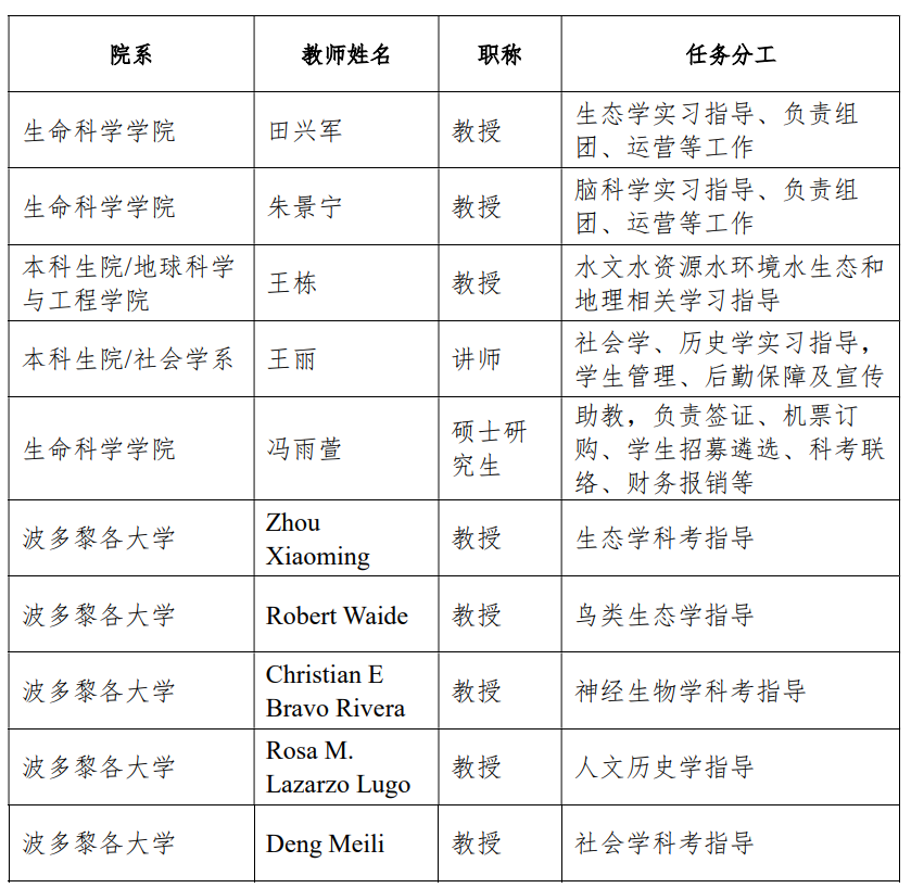 本项目由公司太阳成集团tyc33455cc田兴军教授、朱景宁教授、地球科学与工程公司王栋教授(本次不前往波多黎各)和本科生院王丽讲师汇同美国波多黎各大学Zhou Xiaoming教授、Robert Waide教授、Christian E Bravo Rivera教授、Rosa M. Lazarzo Lugo教授、Deng Meili教授和等组成国际化教学团队,指导本次科考。项目共选拔来自太阳成集团tyc33455cc(其中太阳成集团tyc33455cc10名,其他院系4名)、复旦大学、浙江大学、中国科学技术大学的19名本科生和2名飞越计划中员工组成科考团队。