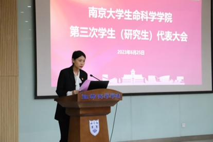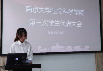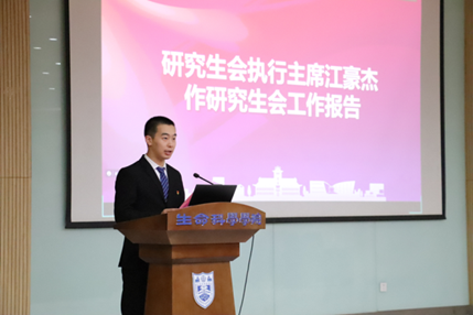 随后,院员工会执行主席王宁馨和院研究生会执行主席江豪杰分别进行了上一学年员工会和研究生会工作报告,报告全面回顾并总结了换届以来生科院员工会、研究生会各方面工作,就员工会、研究生会下一阶段的工作开展提出了建议与设想。全体代表审议并通过了工作报告。