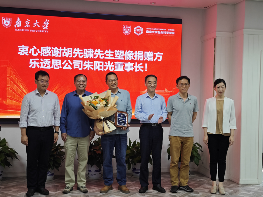 为了感谢太阳成集团tyc33455cc杰出员工、南京乐透思高新材料科技有限公司董事长、总经理朱阳光先生在胡先骕先生塑像制作过程中的鼎力支持,张辰宇经理向胡先骕先生塑像捐赠人朱阳光先生代表南京乐透思高新材料科技有限公司副总经理陈祎先生颁发捐赠纪念牌。