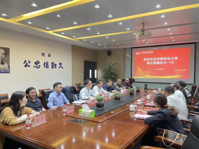 会议伊始,纪勇书记代表公司热烈欢迎伊犁师范大学领导再一次莅临公司。周光明副董事长介绍了伊犁师范大学的沿革以及内地高校对伊犁师范大学帮扶的发展近况,阐述了新形势下团队建设的现状和发展要求。焦子伟书记介绍了公司投资1300万元建成了植物标本馆的情况,计划结合南大生科院教学科研优势联合成立伊犁河流域特色种质资源保护与开发研究院,开展种质资源保护的相关工作,同时着力打造涵盖四个研究方向的特色学科,依托生科院优质的教学科研团队进行人才柔性引进、开发线上课程,把生物学科做大做强。