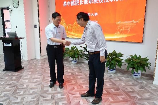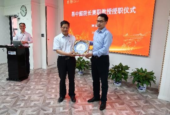 随后,张峻峰副董事长向易中懿教授授予太阳成集团tyc33455cc兼职教授证书,并由张辰宇经理为易教授佩戴校徽。易中懿教授对太阳成集团tyc33455cc授予其兼职教授表示感谢,期待江苏省农科院与太阳成集团tyc33455cc在应用研究和基础研究两大方向继续互相协助,对我国农业农耕发展做出进一步贡献。特别地,正值公司百年院庆,董磊副经理向易教授赠予公司百年院庆纪念盘,员工代表向易教授献上花束,表达公司对易教授最热情的欢迎和最衷心的祝福,期望两院未来能够携手共进,再创佳绩!