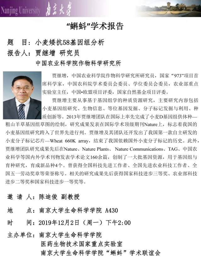 “蝌蚪”学术报告:小麦矮抗 58 基因组分析
