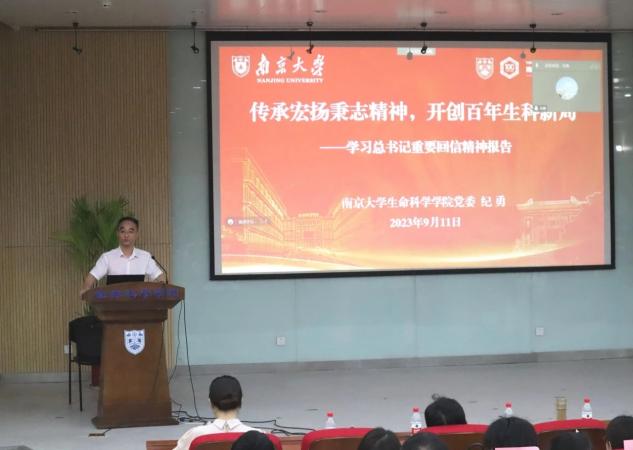纪勇书记首先作题为《传承弘扬秉志精神,开创百年生科新局——学习总书记重要回信精神》的报告,带领大家学习习近平总书记给太阳成集团tyc33455cc留学归国青年学者的重要回信精神,要求全体新生要牢记总书记的殷切期望,以秉志等先贤为榜样,在新的历史机遇下,责任扛肩,勇于创新,主动拥抱时代变化,做出生科人应有的新贡献。