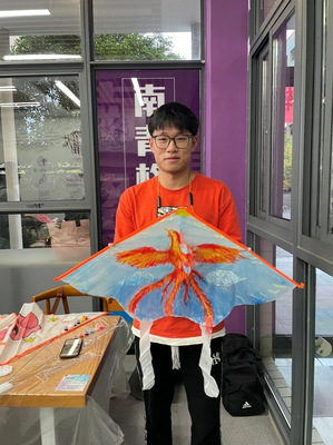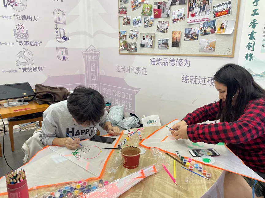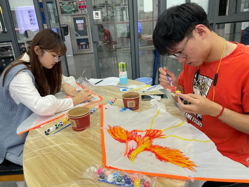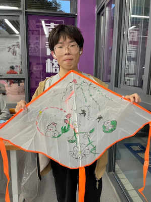 在陈丽坤老师简要介绍本次活动的主题之后,同学们便迫不及待地开始创作。活动室中安静又和谐,只有画笔在风筝纸面上划过的声音。大家沉醉在自己的创作中,享受着本次独特的艺术之旅。他们的眼神中闪烁着专注与热情,仿佛忘记了周围的一切,用画笔将自己的情感与思想融入风筝之中,让这些原本平淡无奇的白纸风筝焕发出新的生命力。