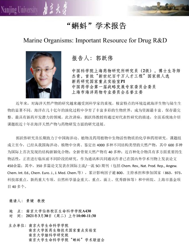 “蝌蚪”学术报告:Marine Organisms: Important Resource for Drug R&D