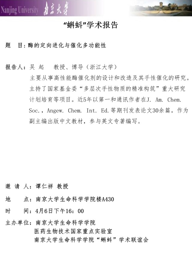 “蝌蚪”学术报告:酶的定向进化与催化多功能性