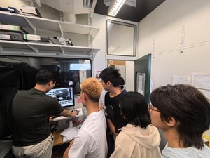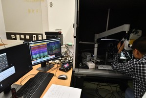 科考队员们还见识到了双光子显微镜在体成像、Neuropixel多通道电极记录和信号分析、VOR和眨眼反射行为学实验设备等多种神经科学尖端实验设备。尤其令人印象深刻的是,每间实验室都有一些完全是自己用零件搭建的“独特仪器”,这些仪器均对实验研究发挥了极其重要的作用。同时,博士生们的演示和讲解让大家更加深入地了解了光遗传学、小鼠行为学实验等神经生物学实验技术和设备。