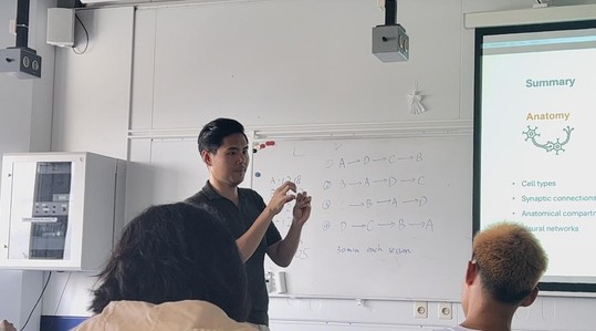 最后,高振宇教授和Xiaolu Wang教授的系列讲座不仅为我们总结了神经科学的基础知识和基本原理,而且让科考团成员们了解了神经生物学的前沿方向——脑的高级认知功能的细胞和神经环路机制以及计算神经生物学对脑认知功能的模拟,科考团成员们又一次意识到交叉学科的重要性。正所谓以终为始,科研突破的背后往往是对于基础知识和概念的深刻理解和重新思考。他们的讲解为科考团的同学们建立起了更扎实、更完整的神经科学知识体系,为实验室参观演示做好了充足的准备。