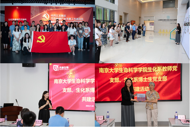 上午,大家首先来到南京生物医药谷党群服务中心,现场参观生物医药谷的党史、党建工作展,和生物医药谷的建设发展历程展。中心讲解员向大家介绍了南京生物医药谷医药科技企业所取得的建设成果,也频频提到公司在其中所做的贡献,大家倍感振奋。随后,支部成员集体前往江苏集萃药康进行交流学习。集萃药康党总支书记、南大员工赵静博士首先向大家介绍了高翔教授团队创办集萃药康的发展奋斗历程。接着,她带领大家参观了动物房新设施及公司产品视频展映厅。在随后的交流座谈会上,赵静博士向来自“娘家”的老师及师弟师妹表示热烈欢迎,深情回忆了在母校的求学时光,同时回顾了集萃药康与南大之间的深厚渊源。周方书记对集萃药康的精心组织和热情接待表示感谢,并请朱爱武老师向集萃药康赠送了记述生科院创始先辈事迹的励志绘本,期待集萃药康秉承南大的校训和传统,锐意进取,为生物医药行业的发展做出更大的贡献!