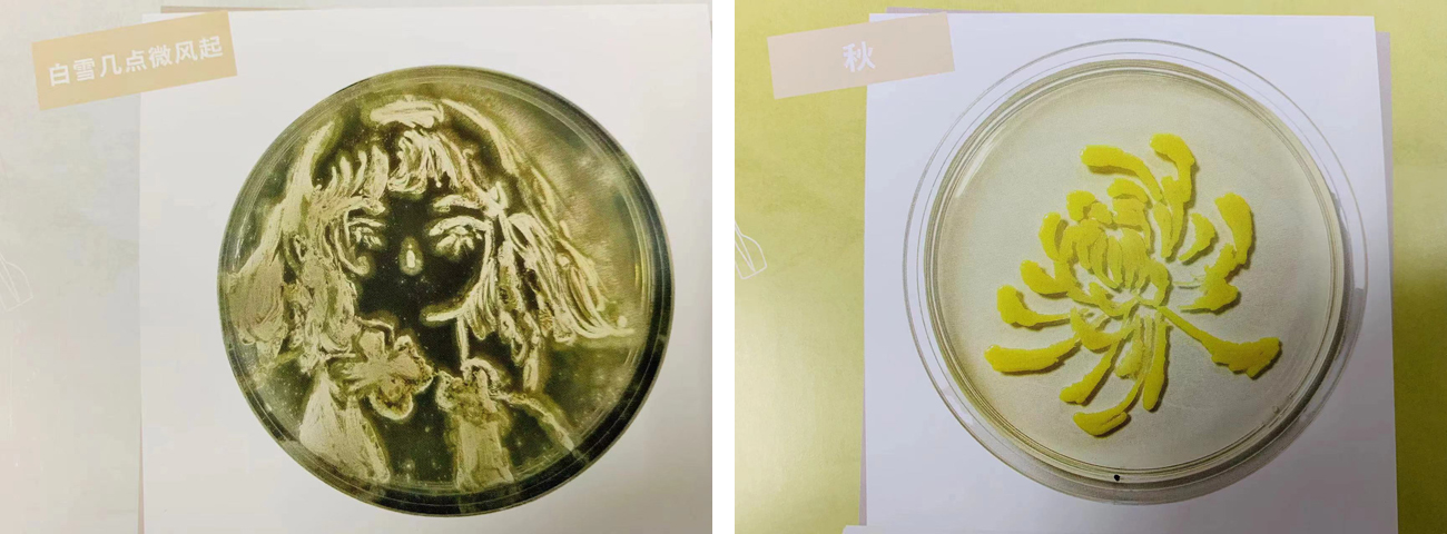 在本次活动中,示范中心与同学们一起克服了时间紧,菌种要求高等各种困难,以示范中心提供的菌种为基础,展开科学、艺术的结合,同学们运用微生物学中细菌和真菌的生长特性、外部形态结构差异性以及菌落色彩的差异性,发挥自己的想象,采用勾描、涂布等手段,勾勒出一幅幅精美的画作。经过多次尝试,在培养皿的方寸之间,描绘了惟妙惟肖的各种景物,展现了微生物实验的多姿多彩和独特魅力。通过本次比赛,促进了员工进一步掌握了金黄色葡萄球菌、枯草芽孢杆菌、酿酒酵母等十余种微生物的典型形态和生长特性。取得了科学性和艺术性相结合的良好示范教学效果。