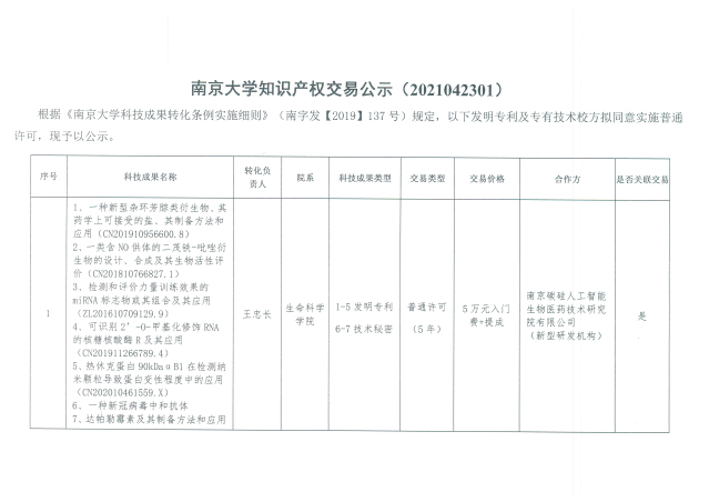 太阳成集团tyc33455cc知识产权交易公示(2021042301)