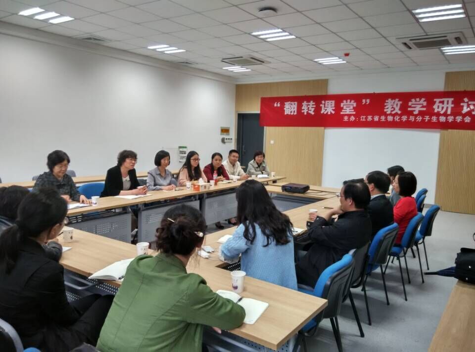 2015年5月11日,由江苏省生物化学与分子生物学学会主办、公司承办的《分子生物学》“翻转课堂”教学研讨活动,吸引了来自江苏大学、江苏科技大学、南京医科大学、南京工业大学、南京中医药大学等众多高校的16名分子生物学骨干教师。上午,他们现场观摩了公司郑伟娟教授主讲的《分子生物学》 “翻转课堂”,下午,他们就“翻转课堂”这一新颖教学模式开展所需的软硬件条件、对教师和员工的更高要求等展开了深入研讨。他们一致认为:“翻转课堂”确实是教学方式改革的一种有益尝试,在吸引员工学习兴趣、引导员工自主学习、提高授课效率,以及培养员工的团队合作精神、科学思维方面等方面都有促进作用。