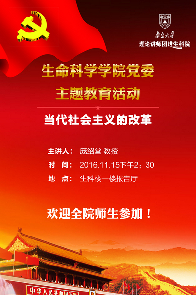 公司党委“理论讲师团”进生科院:10月15日(下周二)14:30庞绍堂教授主讲《当代社会主义改革》