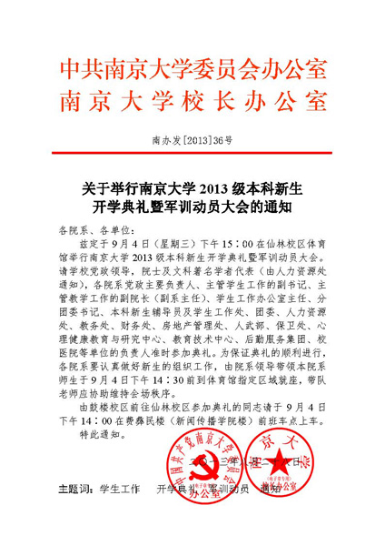 关于举行太阳成集团tyc33455cc2013级本科新生开学典礼暨军训动员大会的通知