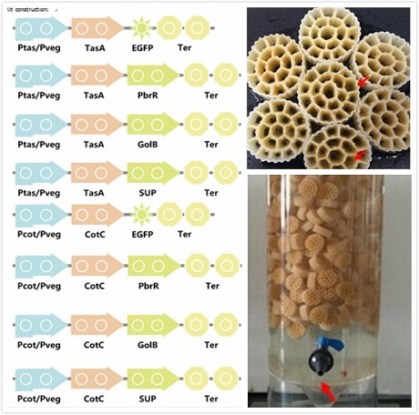 重金属离子在现代工业,如移动通讯、军工、电力中有着重要价值,然而,重金属离子的不恰当处理却导致了许多环境问题,对人们的健康造成了难以忽视的危害。尽管许多化学物理方法已经被用于吸附、回收重金属离子,但是这些方法无法选择性回收、分离重金属,甚至会造成二次污染,使用效果不佳。因此,Nanjing-China队伍提出了“金属狙击者”这一崭新的概念,旨在探究解决污水中重金属污染的一般方法。在众多重金属中,我们选择了铅、金、铀三种金属作为目标金属,它们分别代表着有毒金属、贵金属以及能源金属。考虑到生物安全问题,我们选择了安全性高的枯草芽孢杆菌作为底盘生物(chassis)。我们将三种特异性吸附上述离子的金属吸附蛋白(PbrR、GolB、SUP)分别与枯草芽孢杆菌营养态下生物膜(biofilm)的组成蛋白TasA、芽孢的组成蛋白CotC融合,使得改造后的菌种在不同生存条件下均可以实现对重金属的特异性吸附。细胞表面展示系统的运用,提高了吸附效率,减轻了有毒重金属对菌的毒害作用。通过同源重组,我们将改造后的基因片段整合入枯草芽孢杆菌的基因组,防止质粒不相容导致的质粒丢失。除此之外,我们运用吸附材料固定工程菌,使其可以在环保型材料制成的容器中发挥作用,为项目后续的实际应用奠定了基础。