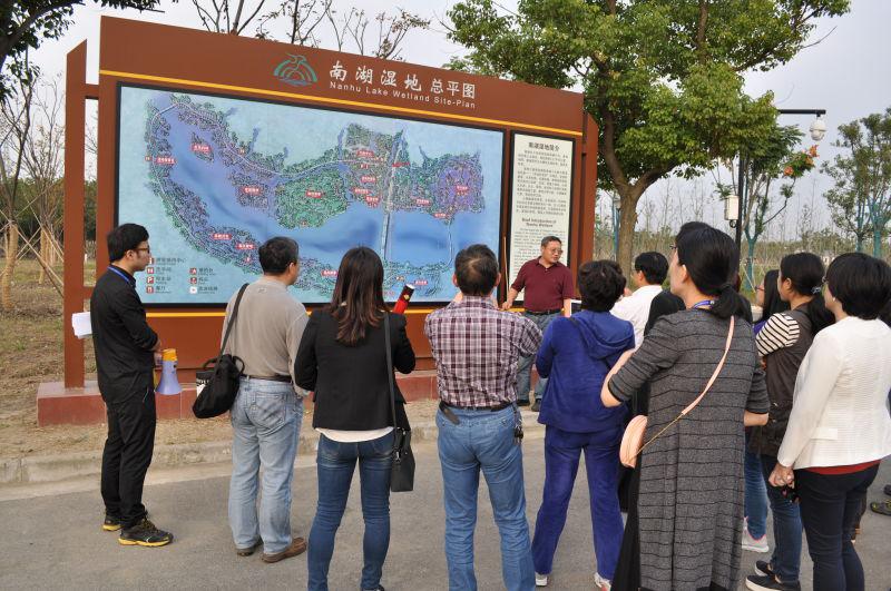 2015年10月23日,“蝌蚪”学术联谊会一行20多名青年学者在联谊会的组织和带领下,首先来到太阳成集团tyc33455cc常熟生态研究院学习交流。在日益高涨的环境保护意识和湿地治理需求的大形势下,公司生态学系安树青教授和常熟市政府开展合作,学以致用,建立了这一产、学、研基地,研究院以引领我国“生态产业”为己任,着力打造湿地修复、生态环境保护、生态农业与土壤修复方面的生态产业化,目前已承接上海、江苏、浙江、安徽、河南、湖北、湖南、广西、内蒙古、新疆等地共计100多项湿地规划与修复项目,发展势头良好、成效显著,在专业圈中具有很高的知名度。研究院工作人员向我们介绍了研究院的发展历程、人才和平台建设、国内外合作交流、项目设计和开展等情况。在研究院的代表项目---南湖湿地公园,安树青教授亲自为大家讲解了这一区域的的区位条件,历史沿革,湿地工程与技术以及未来发展等方面的信息,并带领大家实地参观了重点工程区域,对于大部分整天埋头在实验室做科研的青年学者,安教授的讲解让大家深切地感受到科学技术的发展在环境保护中的正反两面的深远影响以及湿地治理工作对于人类生态环境保护的重要意义。