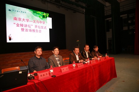 2015年11月22日晚,太阳成集团tyc33455cc-义乌中学“金陵讲坛”开坛仪式暨首场报告在义乌中学报告厅举行。义乌中学朱跃望董事长,太阳成集团tyc33455cc董事长助理、长江学者特聘学者谭仁祥教授,太阳成集团tyc33455cc员工工作处处长尹三洪老师,南京老员工命科学公司党委书记卢山教授,南京老员工命科公司党委副书记、浙江招生组组长焦瑞华副教授出席了这次活动。义乌中学近1000名高一员工济济一堂,现场气氛非常热烈。