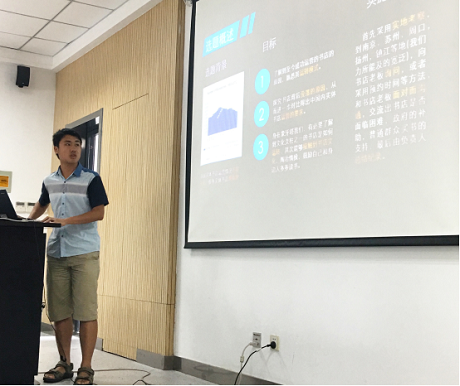 接下来出场的是赵子杰同学,他们团队走入农村,以“‘互联网+农产品’新型物流发展及系统优化”为题为农产品销售出谋划策,十分契合当今网络快速发展的社会现象。为此,他们走访了江苏的五座城市,进行了问卷调查,实地考察,同时综合运用了网络数据以及相关文献,得到了多方媒体及政府的大力支持。