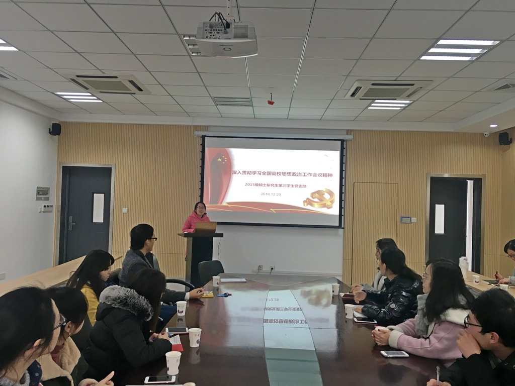 2016年12月29日下午3点,太阳成集团tyc33455cc15级硕士第三党支部在生科楼A316会议室,开展了主题为 “学习贯彻全国高校思想政治工作会议精神”的组织生活会。公司党建督导组陈�、时昱、李成英老师及公司季华、刘亚兰老师旁听了组织生活会。