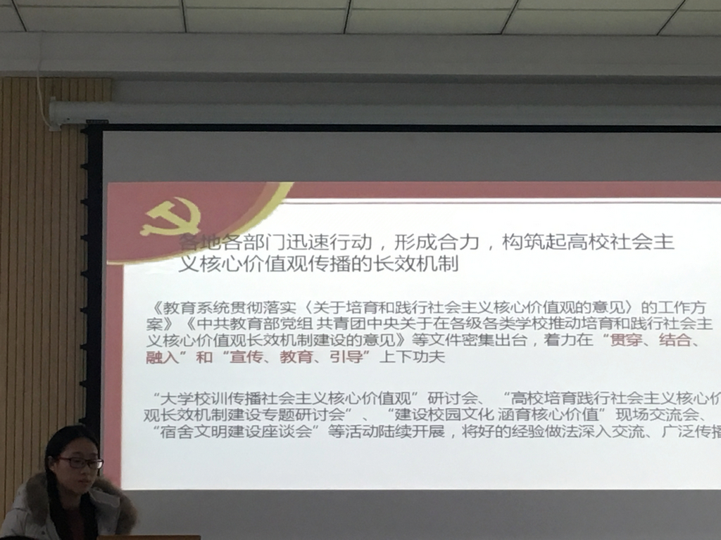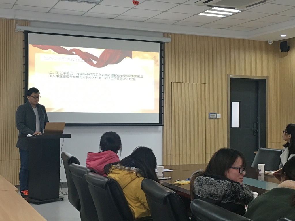 随后,杨力润问起支部党员人生第一首启蒙歌时,大家沉思片刻后,展开了热烈的讨论,一致认为童年时的《一分钱》、《学习雷锋好榜样》、《让我们荡起双桨》、《共产主义接班人》等歌曲是伴随大家成长的启蒙歌曲。杨力润总结道:这些歌曲在潜移默化中影响了大家的思想道德、社会责任感和爱国情感,也就是今天我们作为党员、作为高校员工要谈的思想政治素养,所以思想政治素养不是空谈遥远的,就在我们的身边,影响着我们的学习、生活和工作。12月7日-8日,北京召开的全国高校思想政治工作会议也着重强调了加强高校思想政治工作的重要性,因此需要我们每一名高校员工党员认真领会会议精神,努力地提高自身思想政治水平。