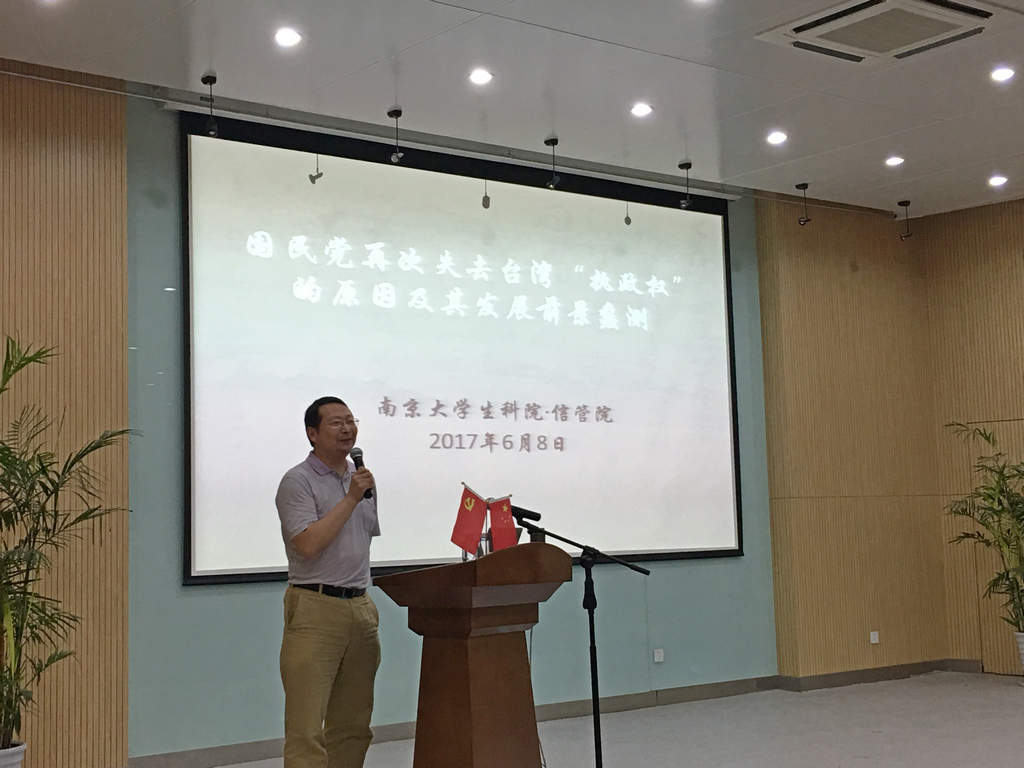 6月8日下午,由公司党委理论讲师团授课专家、历史公司教授刘相平讲授《国民党再次失去台湾“执政权”的原因及其发展前景蠡测》主题党课在生科院报告厅开讲。此次党课是生科公司党委、信管公司党委联合主办第三场的党课,由生科公司党委副书记焦瑞华主持。信管公司党委书记江莹、信管公司党委副书记罗萍,生科公司党委书记卢山、执行经理华子春以及生科院全体党委委员及两院师生党员300余人聆听了精彩的党课。