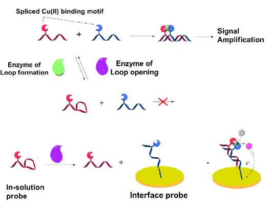 近日,【Scientific report】以Enzymatically Regulated Peptide Pairing and Catalysis for the Bioanalysis of Extracellular Prometastatic Activities of Functionally Linked Enzymes为题发表了李根喜教授课题组的另外一项成果(www.nature.com/articles/srep25362) :他们利用新型生物传感分子探针,针对肿瘤的侵袭过程,发展了酶活性与生物学功能分析的生物传感新技术。在这一研究工作中,他们通过将各种蛋白酶、转肽酶的活性变化转化为卷曲螺旋多肽双链的互补配对、解离等明显的构象变化,并进而用这种构象变化控制多肽与金属离子的配位作用,最终将酶活性变化转化为过渡金属离子催化的化学级联放大反应,从而可产生灵敏的生物传感信号。利用该方法,他们在乳腺癌的临床样本中可以观测到血浆素、组织转肽酶及酪氨酸羟化酶等的活性与肿瘤病情发展阶段所呈现出的平行性。该检测方法灵敏度高,且能够分析多种介导肿瘤侵袭、癌基质变性的关键蛋白质的活性,未来肿瘤诊断和预后提供了更加可靠的技术保证。