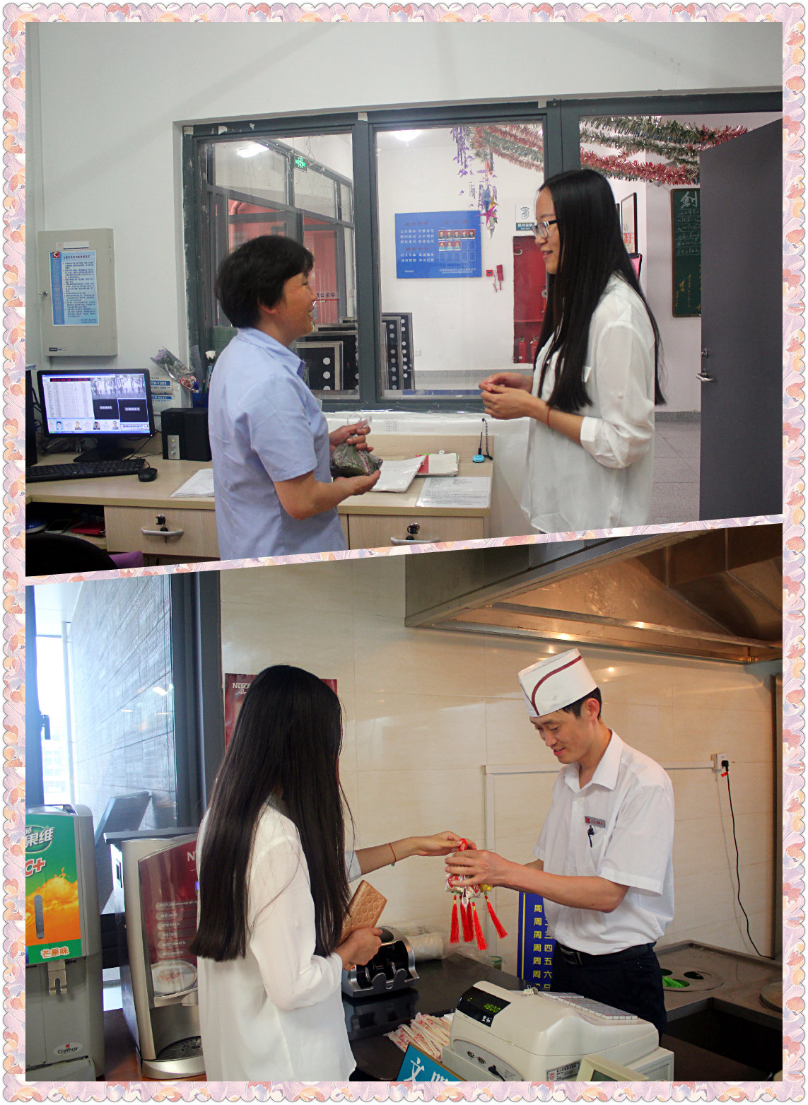 最后,同学们还将粽子打包送给了宿管阿姨,把香囊送给了包粽子过程中给予帮助的食堂工作人员,和更多的人分享自己的成果。