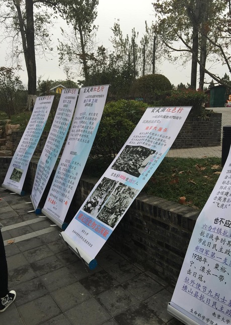 在展台拍完集体照后,五个小分队分头进行竞赛。每个小组需要在寻找指定地标的同时向游客宣传南京抗战以及南京大屠杀历史的知识,回答正确的同时送上精美的小礼品~