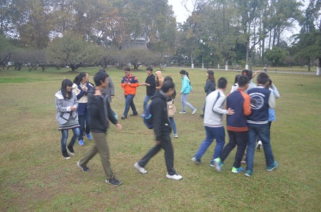 在瑟瑟发抖的秋末下午的最终场地上,小志愿者和学姐学长们一起玩一块五毛的游戏,这种互相取暖的游戏简直太适合这种天气啦!