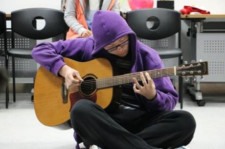 对于新生而言,老员工活是丰富多彩的,男生宿舍A642为此拍摄制作了视频《宝宝们的日常》,展现男生的宿舍生活。“暖男”陈乾席地而坐,带来一首吉他指弹演奏《Fight》,手指在琴弦上舞动,同学们都沉浸在美妙的节奏中。