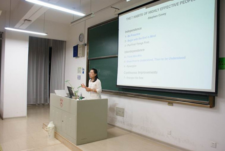 分享会上,15岁进入大学的学霸唐海秋师姐首先跟员工们分享了自己的老员工活经验和感悟。唐海秋师姐是宝洁的首席科学家、高级培训官,结合多年的员工培训经验,从不同角度入手跟同学们分享自己成功的方法以及为人处事的技巧。同学们对于宝洁以及宝洁的科研有很多的期待和好奇,唐海秋师姐对同学们提出的问题一一作出了答复,循循善诱式地启发同学们对自身不足之处作出反省,在此基础上重新建立对“成功”“双赢”“利益”等名词的认识,结合多种形式使同学们在轻松愉快的气氛中对未来有了更明确的规划。