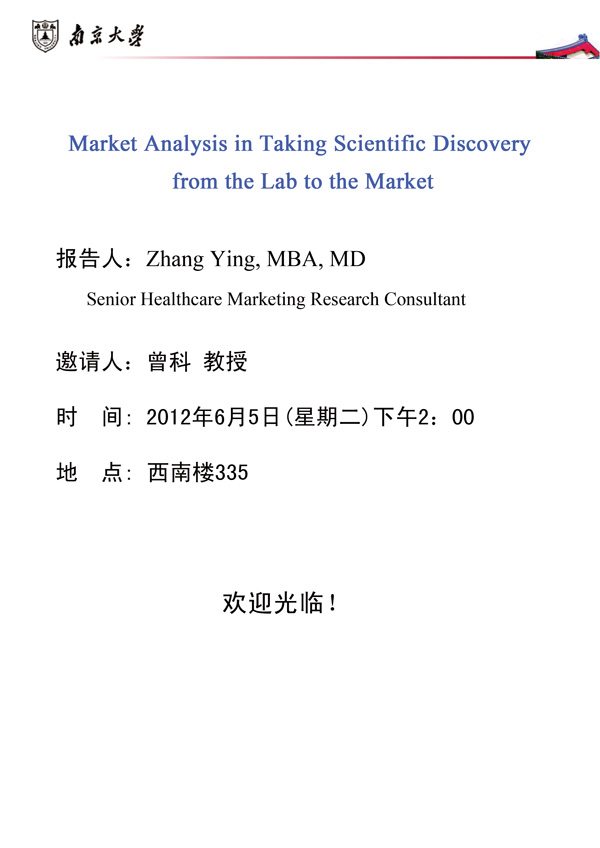 学术报告:Market Analysis in Taking Scientific Discovery from the Lab to the Market