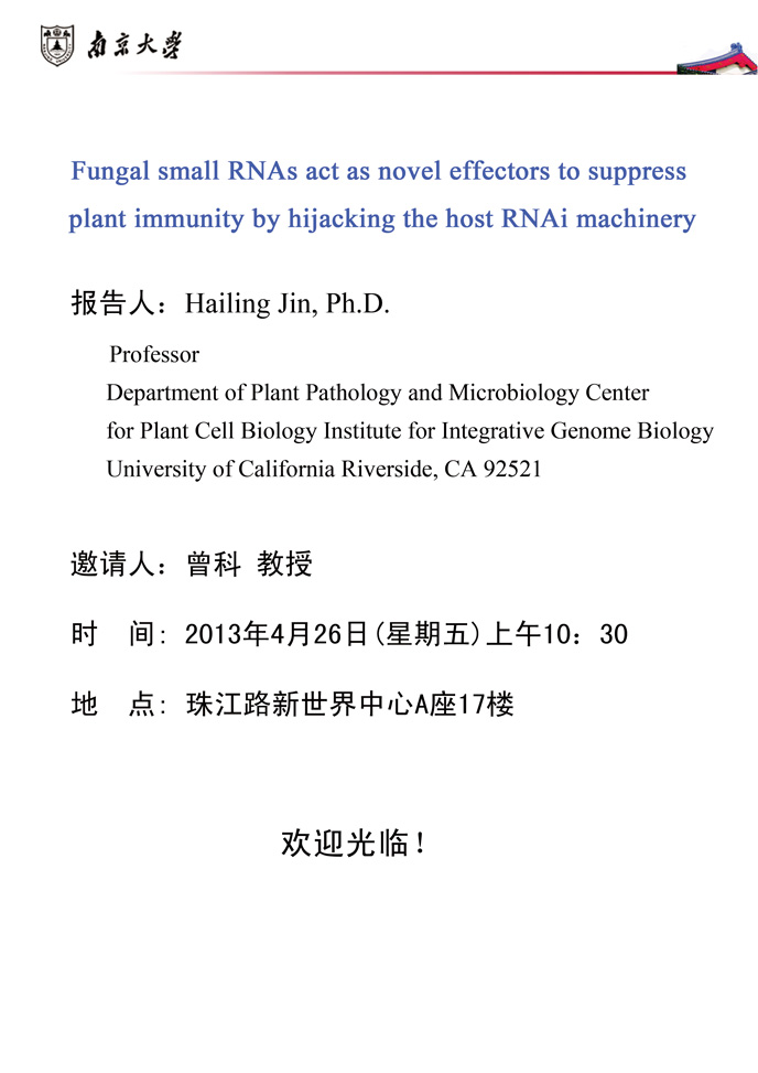 学术报告: Fungal small RNAs act as novel effectors to supperess plant immunity by hijacking the host RMAi machinery