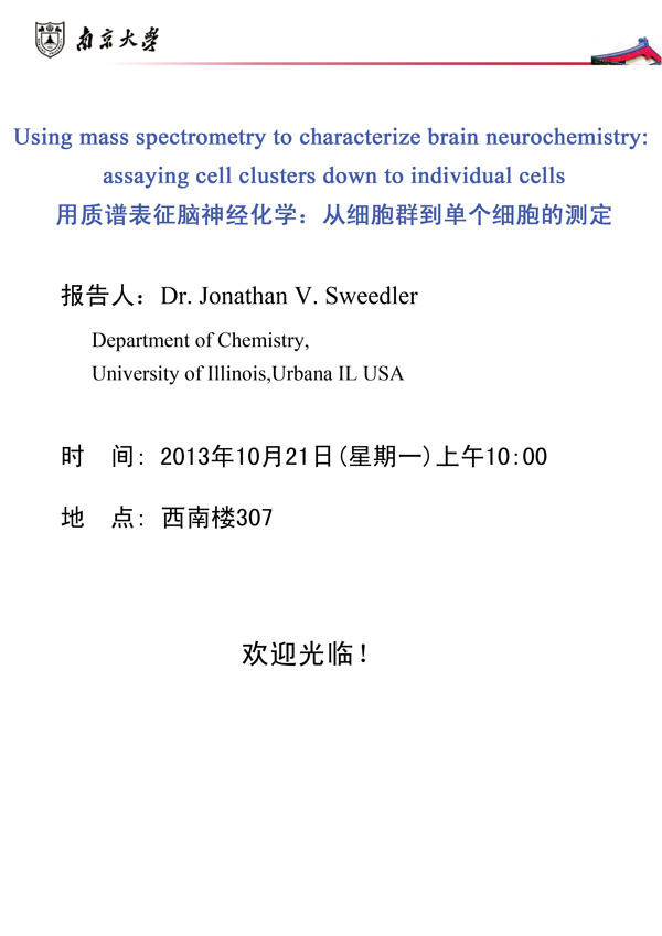 学术报告: Using mass spectrometry to characterize brain neurochemistry: assaying cell cluster down to individual cells