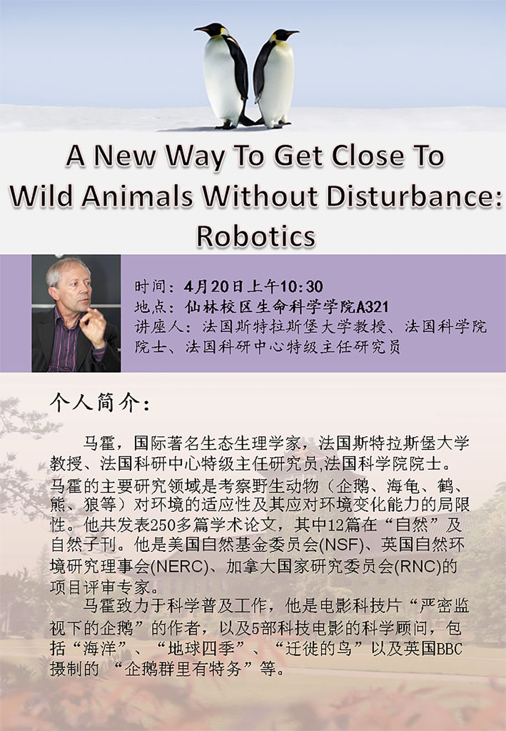 学术报告(4月20日):A New Way To Get Close To Wild Animals Without Disturbance: Robotics